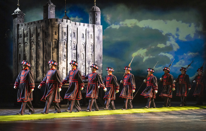 The finale is colourful and joyous. A blue sky is set against a Tower of London miniature. The chorus emerges in its full beefeater glory. It’s camp, but it’s still not funny.